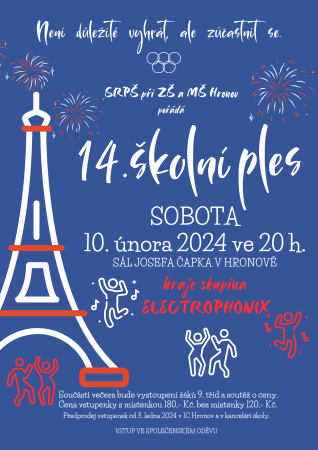 SRPŠ při ZŠ a MŠ Hronov si Vás dovoluje pozvat na 14. školní ples.