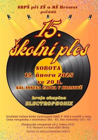 SRPŠ při ZŠ a MŠ Hronov si Vás dovoluje pozvat na 15. školní ples.