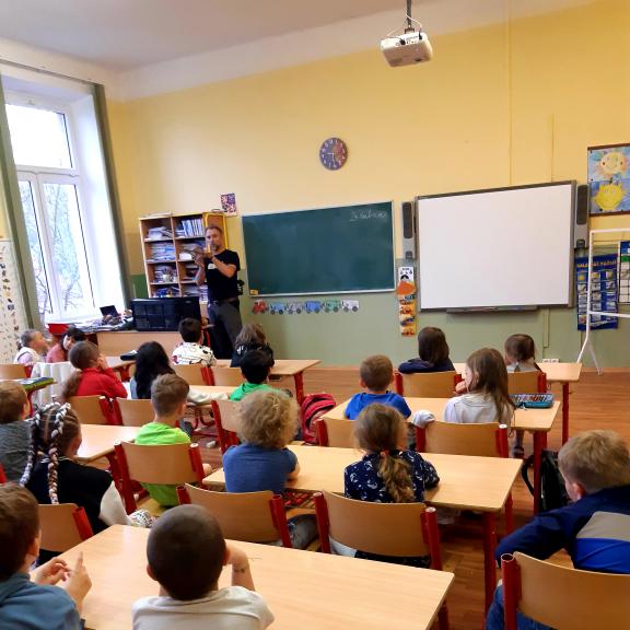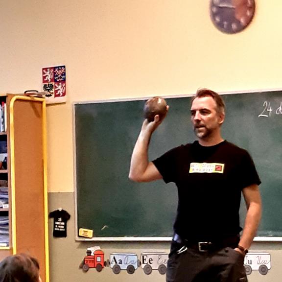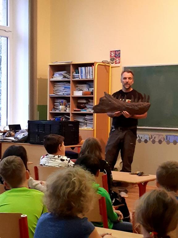 Ve čtvrtek 24. 4. 2025 nás navštívil RNDr. Štěpán Rak, Ph.D. profesionální paleontolog, autor Albi mluvící knihy Dinosauři. Viděli jsme mnoho vzácných zkamenělin a exponátů, měli možnost držet v ruce odlitky zubů a drápů dinosaurů a dokonce i opravdový zub Megalodona a Spinosaura. Naučný program o dinosaurech žáky zaujal.