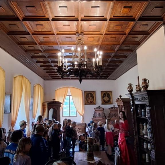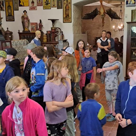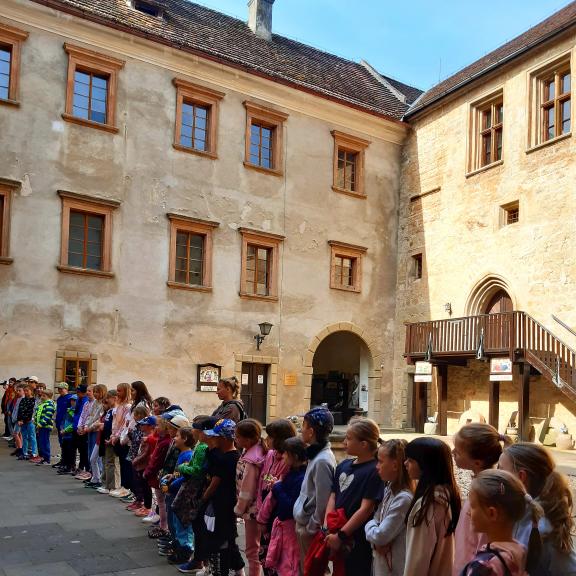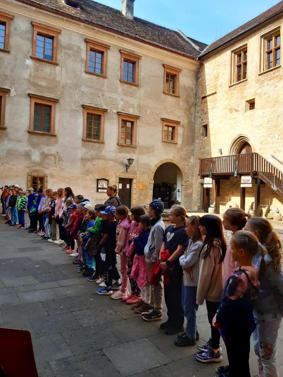 V úterý 10. 6. 2025 jsme navštívili hrad a zámek Staré Hrady. Prošli jsme čtyřmi prohlídkovými okruhy - Hradní pohádková půda (půda plná čarodějnic, skřítků a draků), Hradní pohádkové sklepení (pohádková atmosféra tajemného sklepení obohacená o zvukové a světelné efekty), Hrad a zámek s Dračí čarodějnou královskou komnatou (příjemná kombinace historie a pohádky - Jak se žilo za císaře pána Františka Josefa I.) a Čarodějnou Bestyjolu (zvířátka, potvůrky a havěť různých čarodějnic).