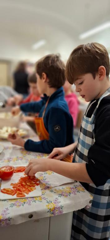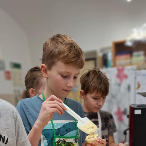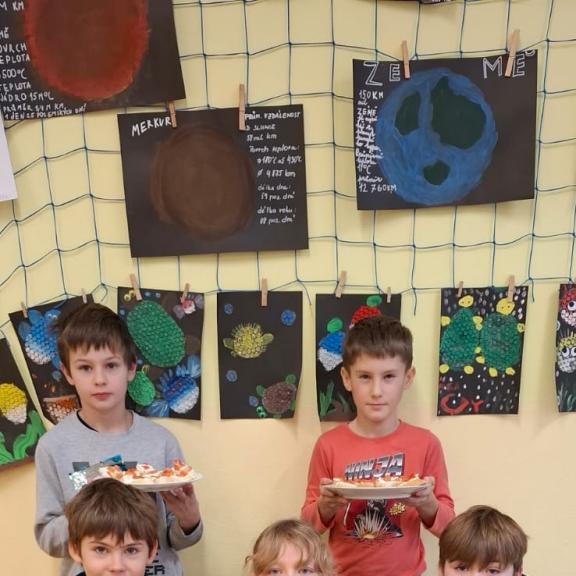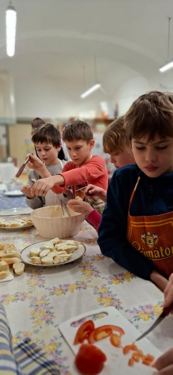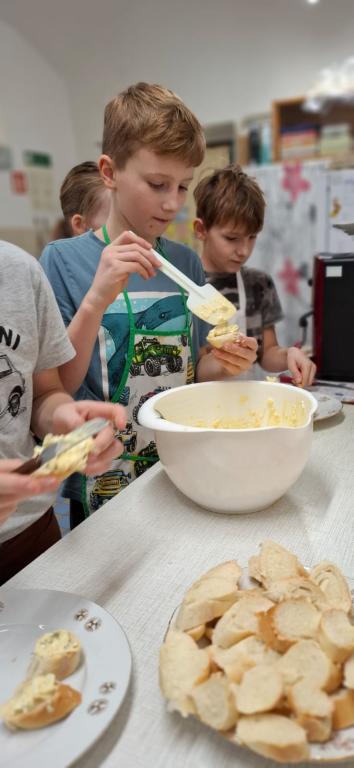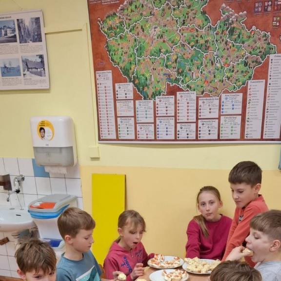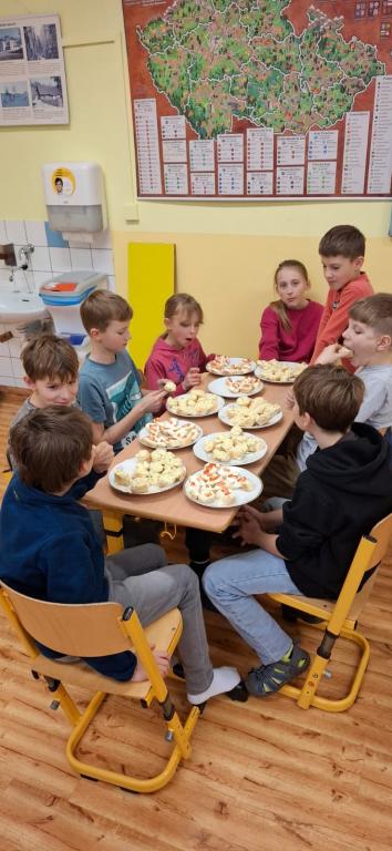 třída připravovala česnekovou pomazánku, pátá třída vajíčkovou. Pracovalo se ve