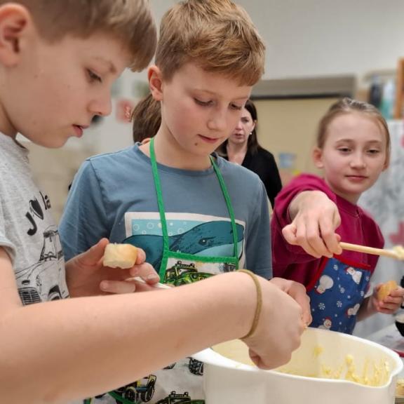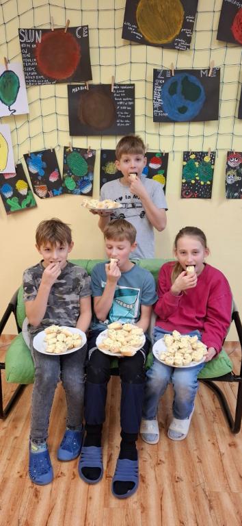 skupinách, děti si rozdělily role, společně krájely, míchaly a ochutnávaly. Na
