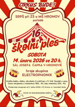 SRPŠ při ZŠ a MŠ Hronov si Vás dovoluje pozvat na 16. školní ples.