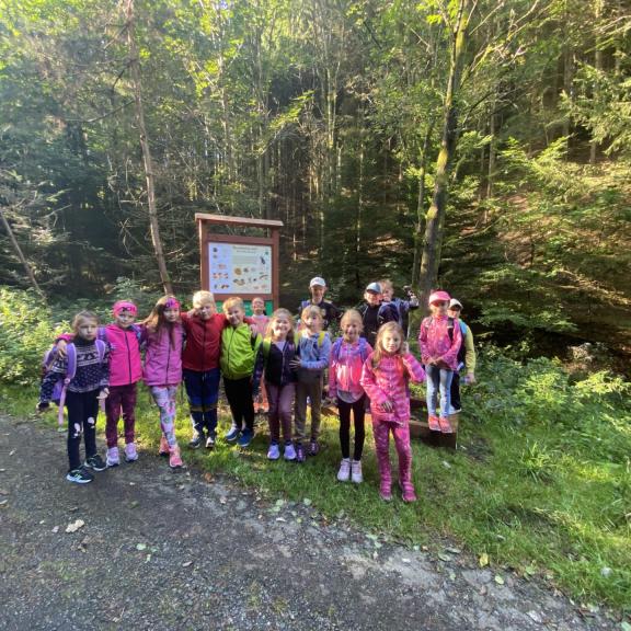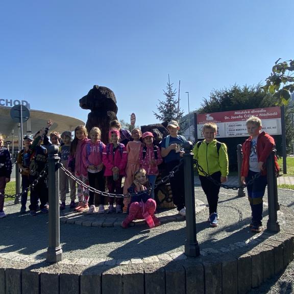 Autobusem do Náchoda a vlakem zpět. Tento výlet stihla ještě v září třída 2.B. Využili jsme naučnou stezku v náchodských lesích. Pozorovali jsme živočichy, poznávali stromy, plnili úkoly a počítali ptačí budky, které byly ukryty na stromech. Výlet se vydařil.
