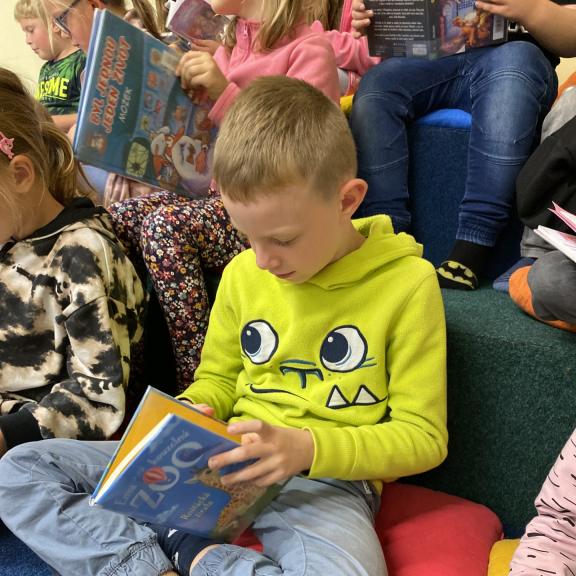 Malí - velcí čtenáři z 2.B vyrazili se svými průkazkami do knihovny. Naučili se orientovat v knihovně a mohli si vybírat z velkého množství krásných knížek, které hronovská knihovna nabízí. Všichni odcházeli s úsměvem na rtech a odnášeli si knihu podle svého gusta.