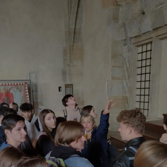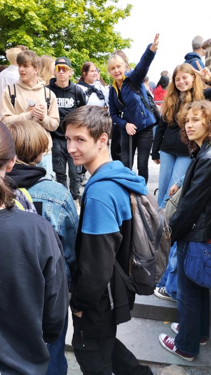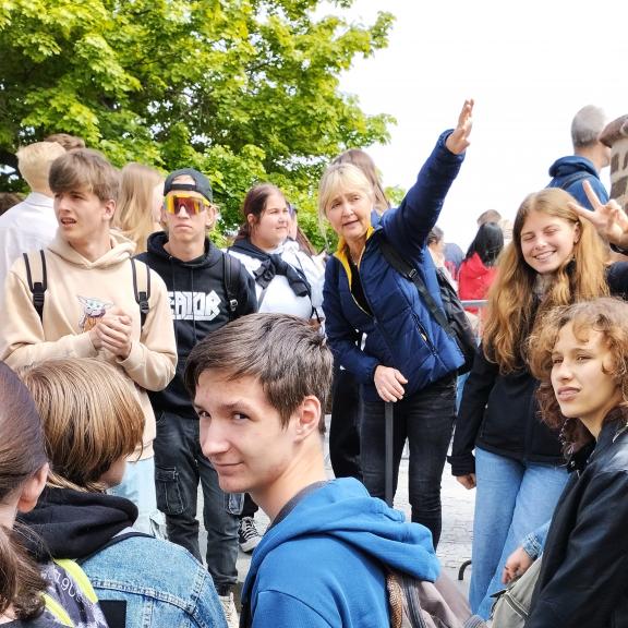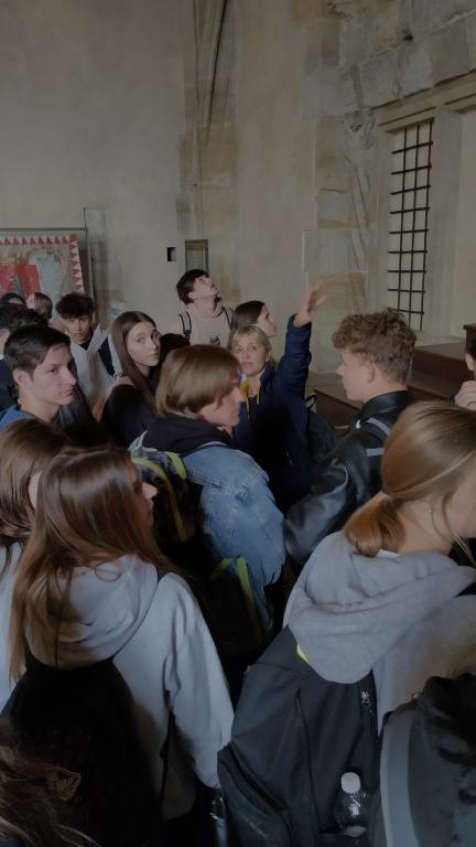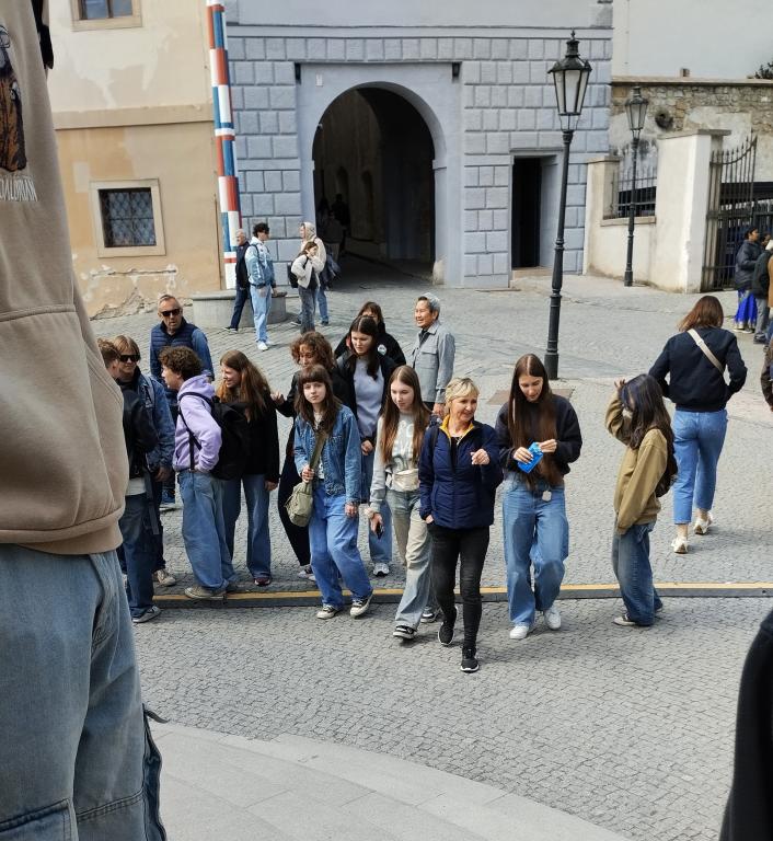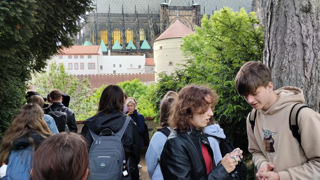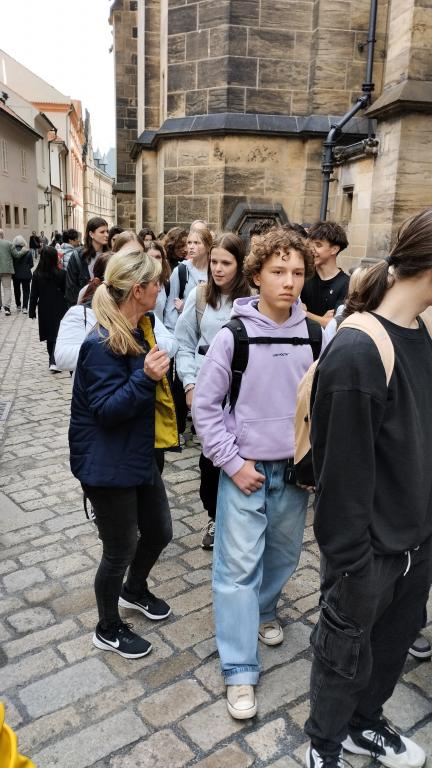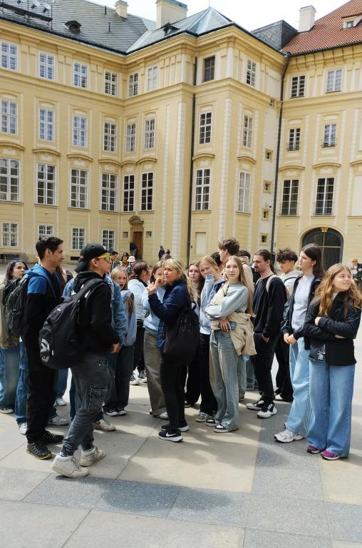 Na nádvoří před prohlídkou Vladislavského sálu.